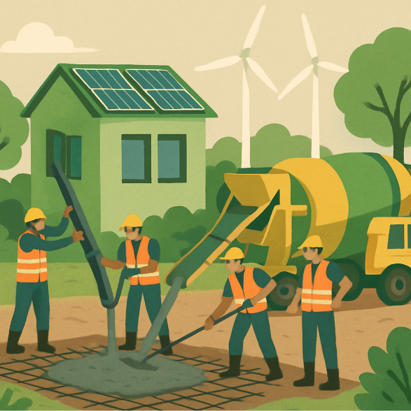 Opt for low-carbon cement mixes like PLC or SCM-based solutions for durability and sustainability.